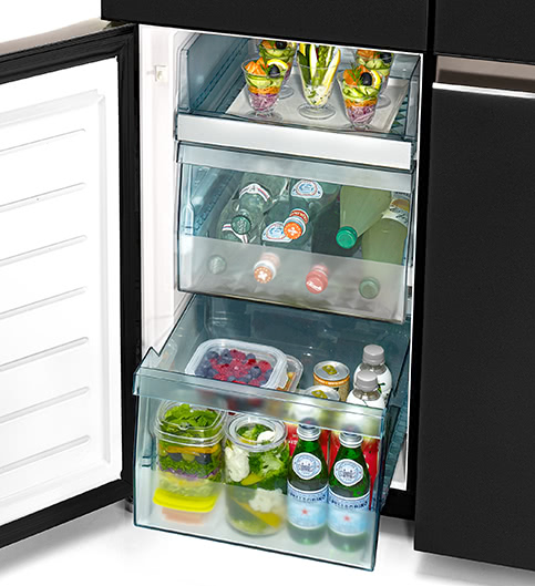 For long-lasting freshness, each of the cases maintains the moisture of the food at the optimum level of approx. 90%* with indirect cooling. And the completely separate compartments are always full of clean air with no transferred odours thanks to the Triple Power Filter.