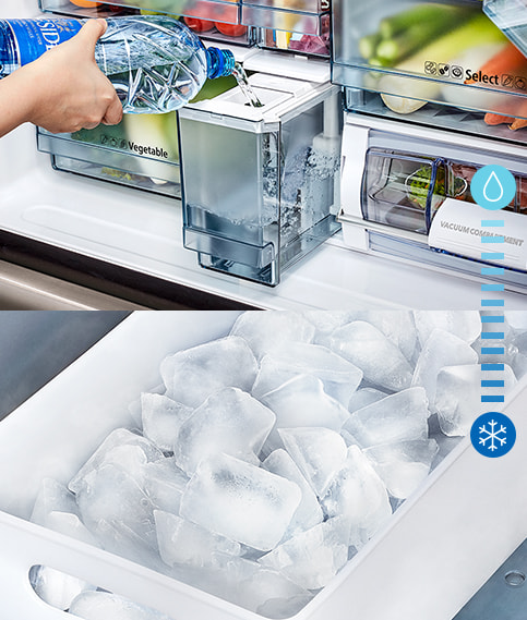 Ice cubes can be made automatically and continuously simple by filling the tank with water. When you want to make your ice quickly, switch the Quick Freezing mode ON which can make the ice approx. 24% faster.