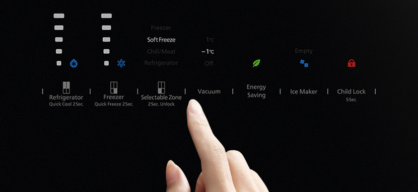 Selectable Zone (Refrigerator, Chill/Meat, Soft Freeze, Freezer)