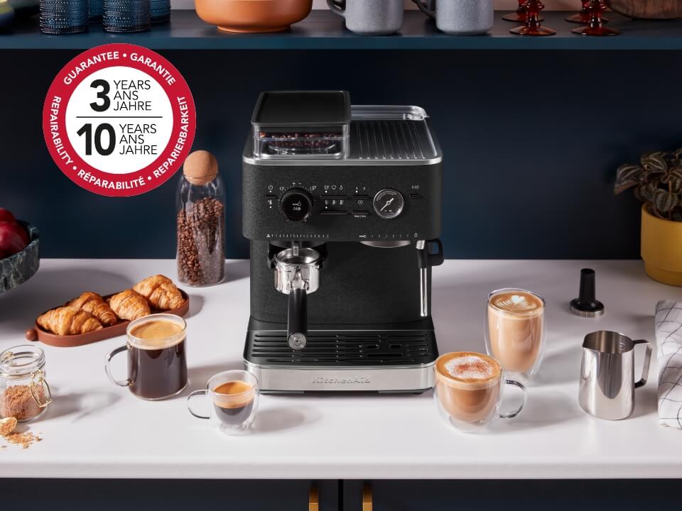 With its compact, metal-clad construction, the semi automatic espresso machine with burr grinder is designed to integrate seamlessly into your home. Its durable build brings you beauty, precision and years of quality, backed by a 3-year guarantee and 10 years of reparability. Choose a premium colour to complement the vibe of your interiors. Certified by Quiet Mark, it's one of the quietest machines its category, helping to keep a calm home. Everything you love about espresso is here — right on your countertop.