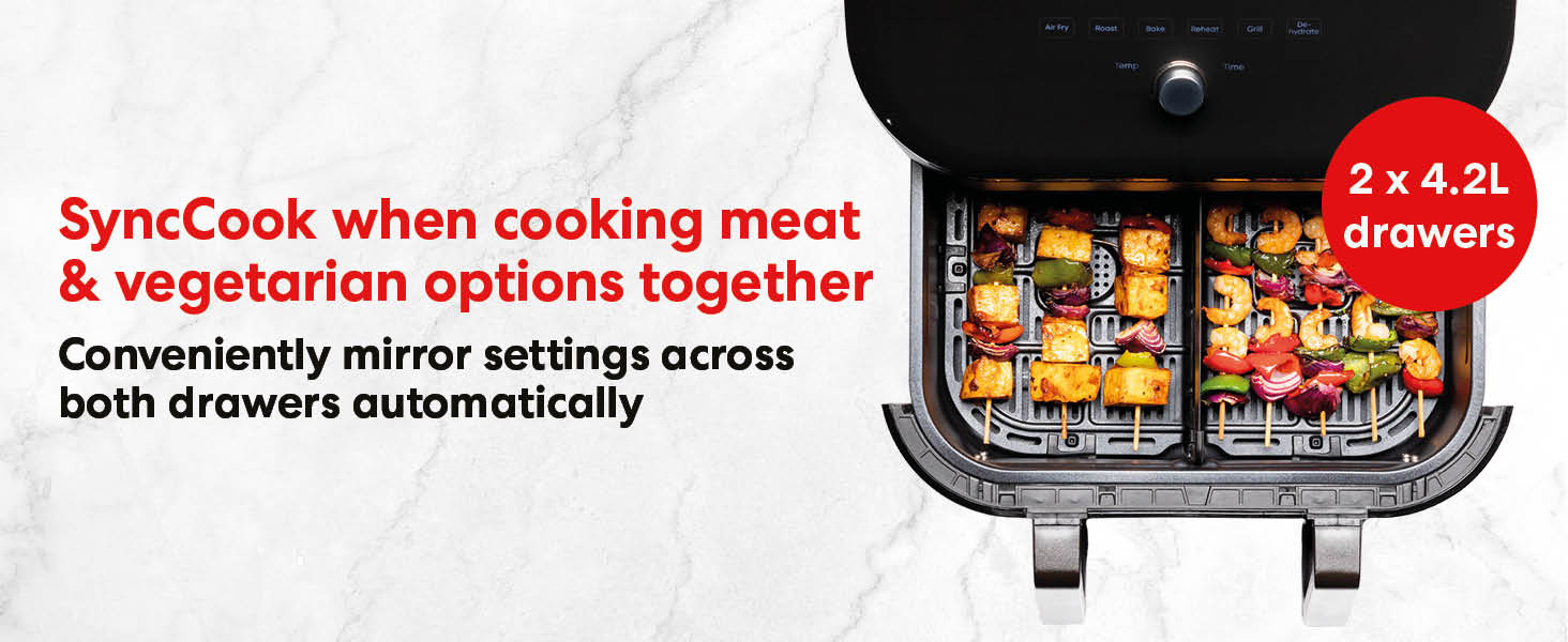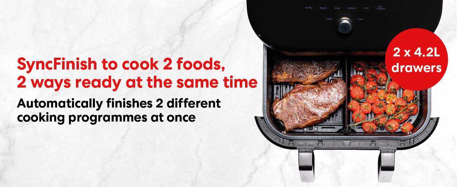 • MORE THAN JUST AIR FRYING: 8 functions in 1, bake, roast, grill, reheat, air fry or dehydrate plus the SyncCook & SyncFinish features guaranteeing synchronized meal preparation