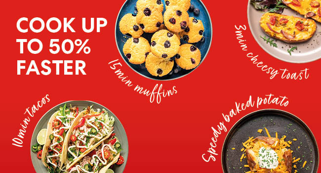 Uses up to 80% less energy and cost compared to cooking in a traditional oven