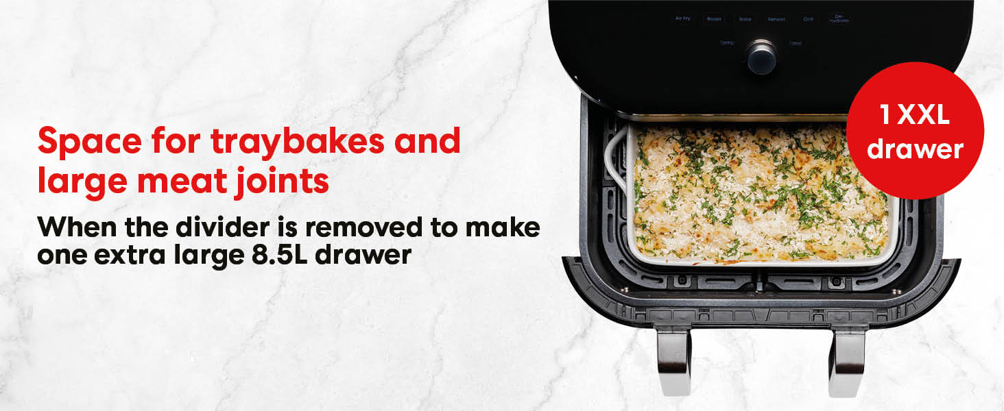 • CHOOSE YOUR BASKET SIZE: Cook an entire family meal in a single 8.5L basket or split into 2 x 4.2L zones for your Friday fish and chips, with separate controls for each basket