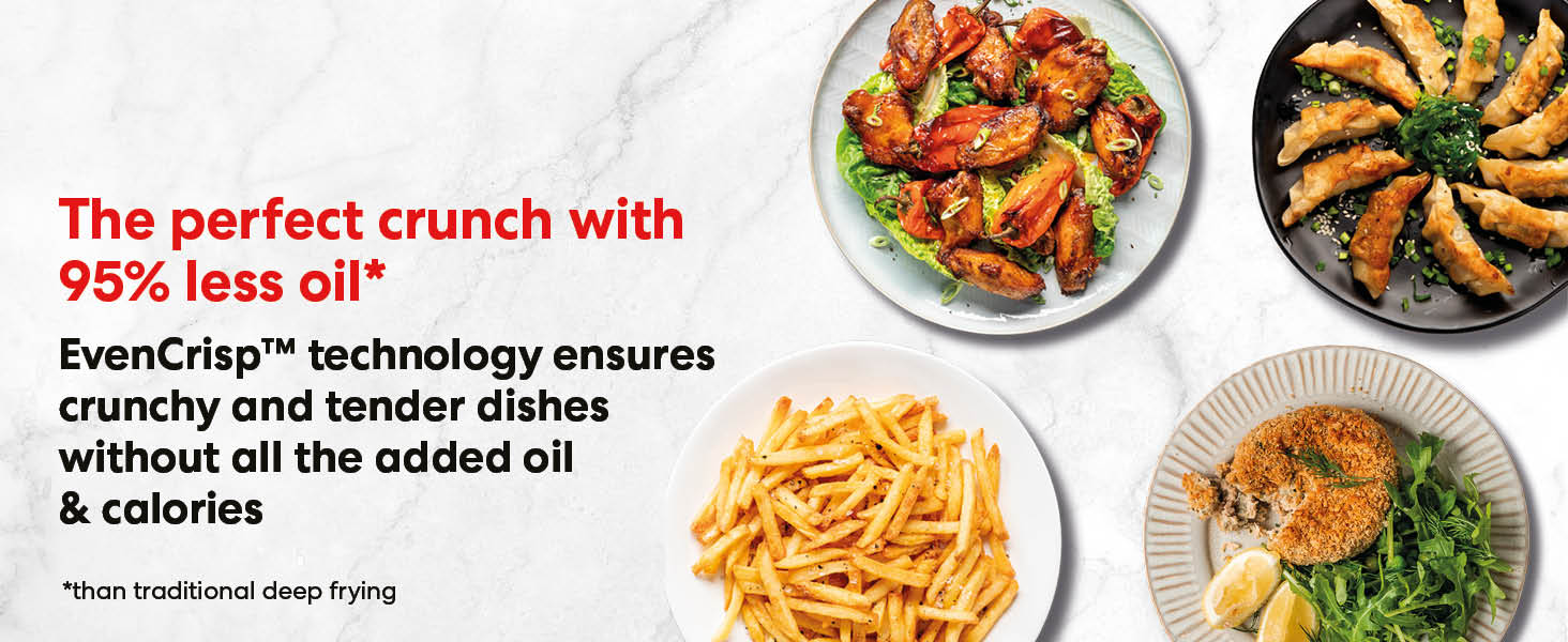 • EVENCRISP TECHNOLOGY: The crunch and tenderness of deep-frying with 95% less oil