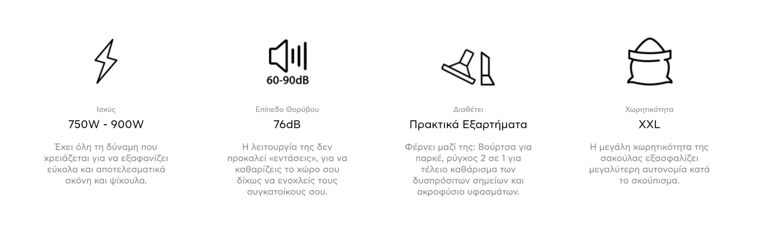 Επιπλέον, χάρη στα χαμηλά επίπεδα θορύβου κατά τη χρήση της, σου επιτρέπει να επιδοθείς στο καθάρισμα ακόμα και τις ώρες κοινής ησυχίας, χωρίς να ενοχλείς τους γείτονές σου!