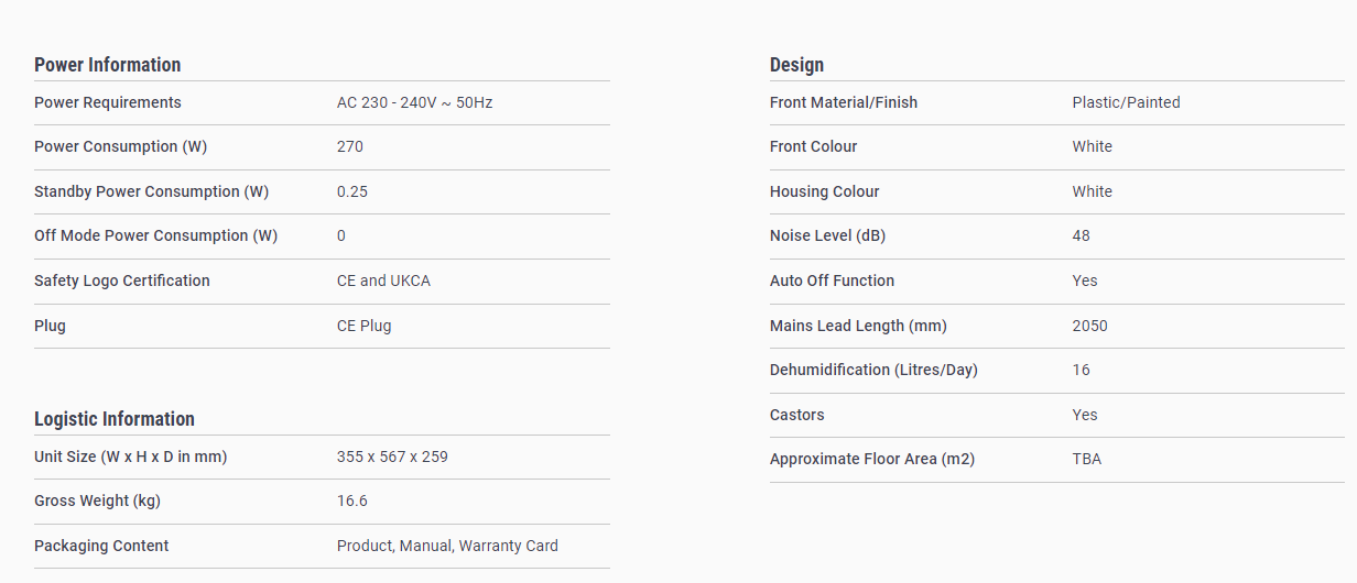 Compact unit with sleek white finish. This unit will suit all sized rooms and not look out of place.