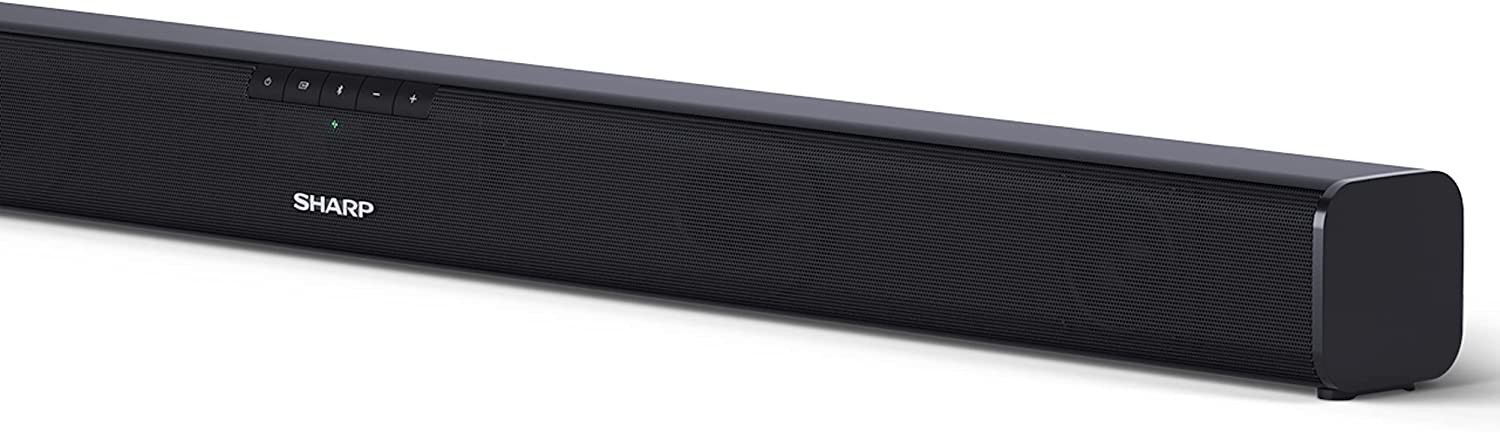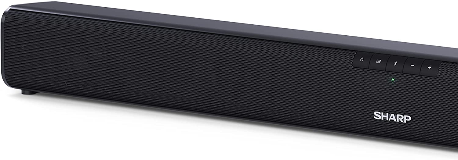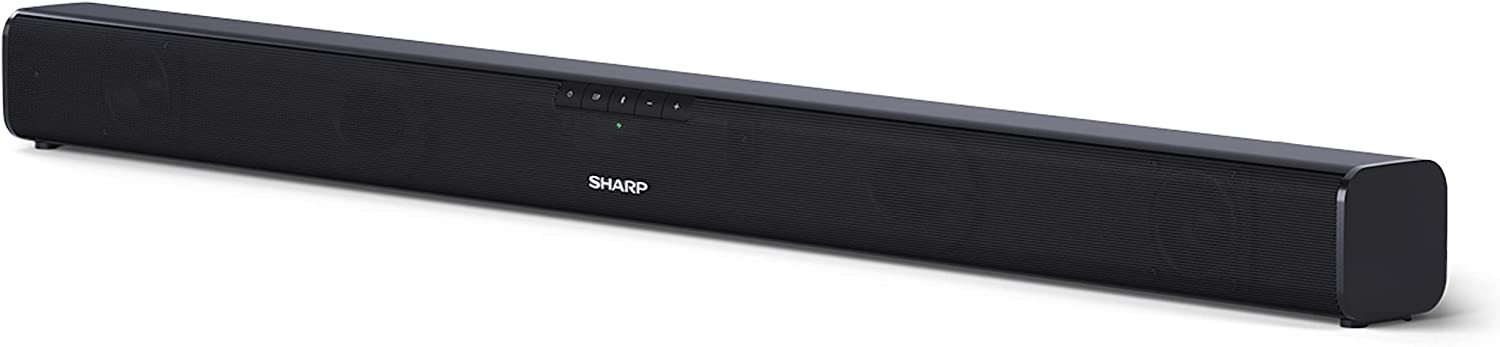 SHARP HT-SB110 2.0 Soundbar, 90W Slim Wireless Bluetooth Soundbar for TV and Device Streaming with HDMI ARC /CEC, Digital Optical-In, Aux and Remote Control, Wall Mount or Table Top Sound Bar – Black