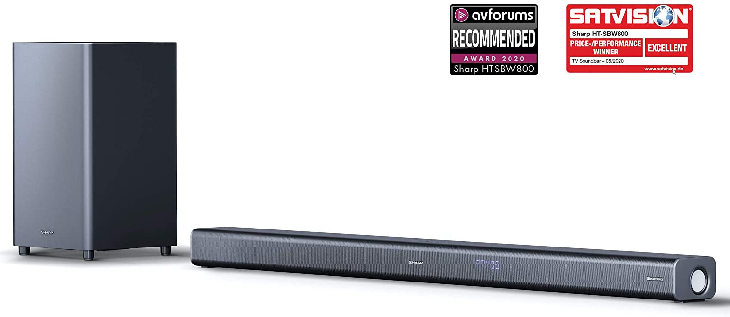 SHARP HT-SBW800 5.1.2 Soundbar, 570W Dolby Atmos Soundbar with Subwoofer for TV with Wireless Bluetooth, Surround Sound, 4K Pass-Through, Aux, HDMI ARC /CEC & USB Playback, Table Top Sound Bar -Black